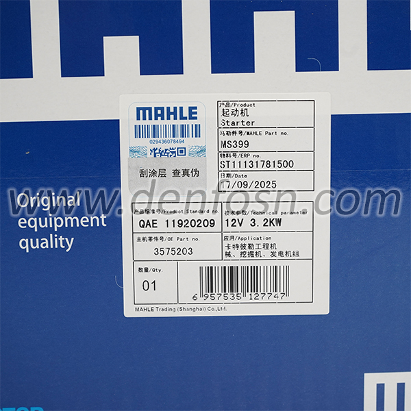 MS399 MAHLE-- PERKINS 2873K405 T410865 3575203 CATERPILLAR 2253149 JCB 714/40159 AGCO SISU POWER 261 946 00 Starter Motor 12 Volts/3 KW 10Teeth